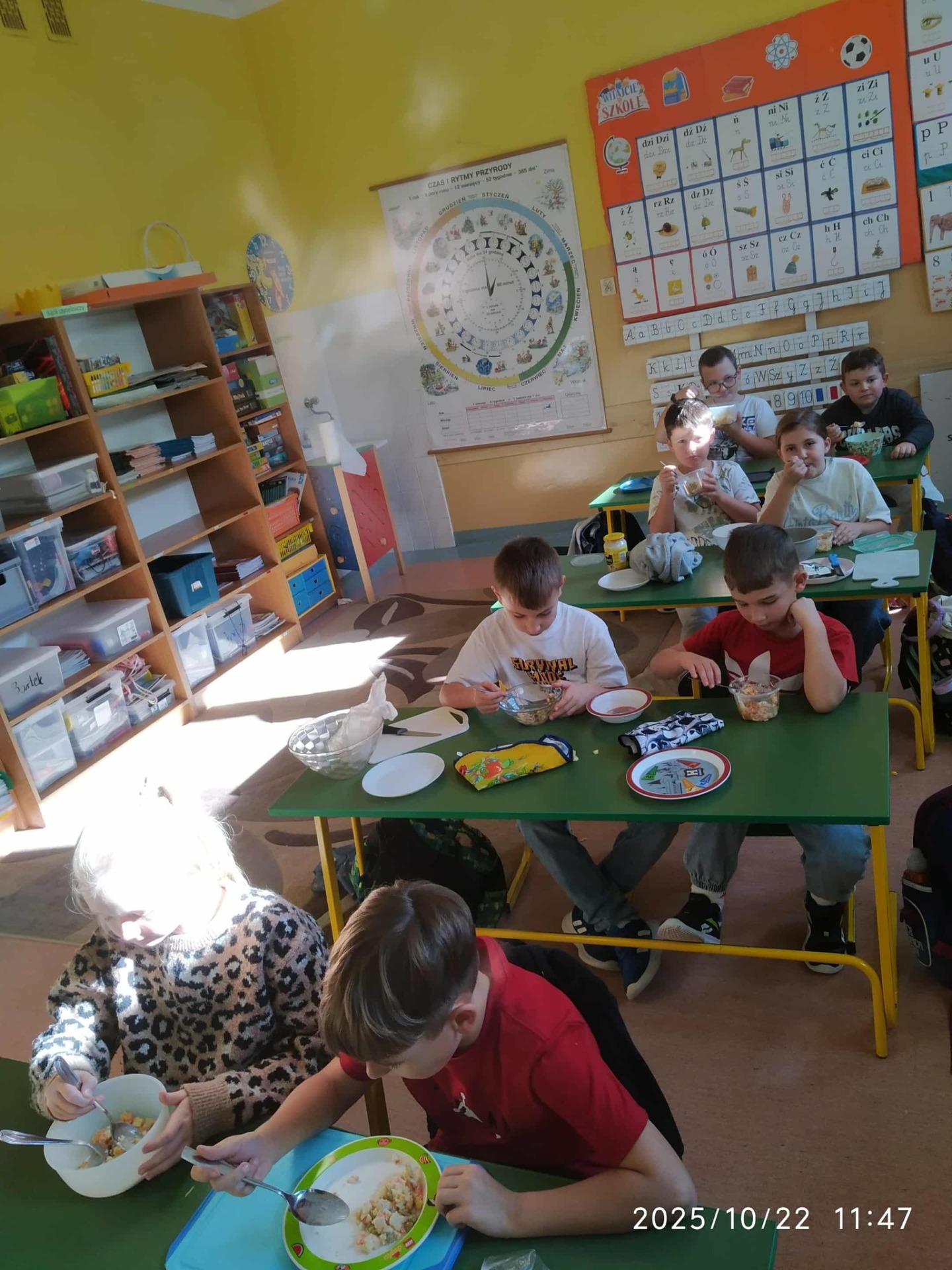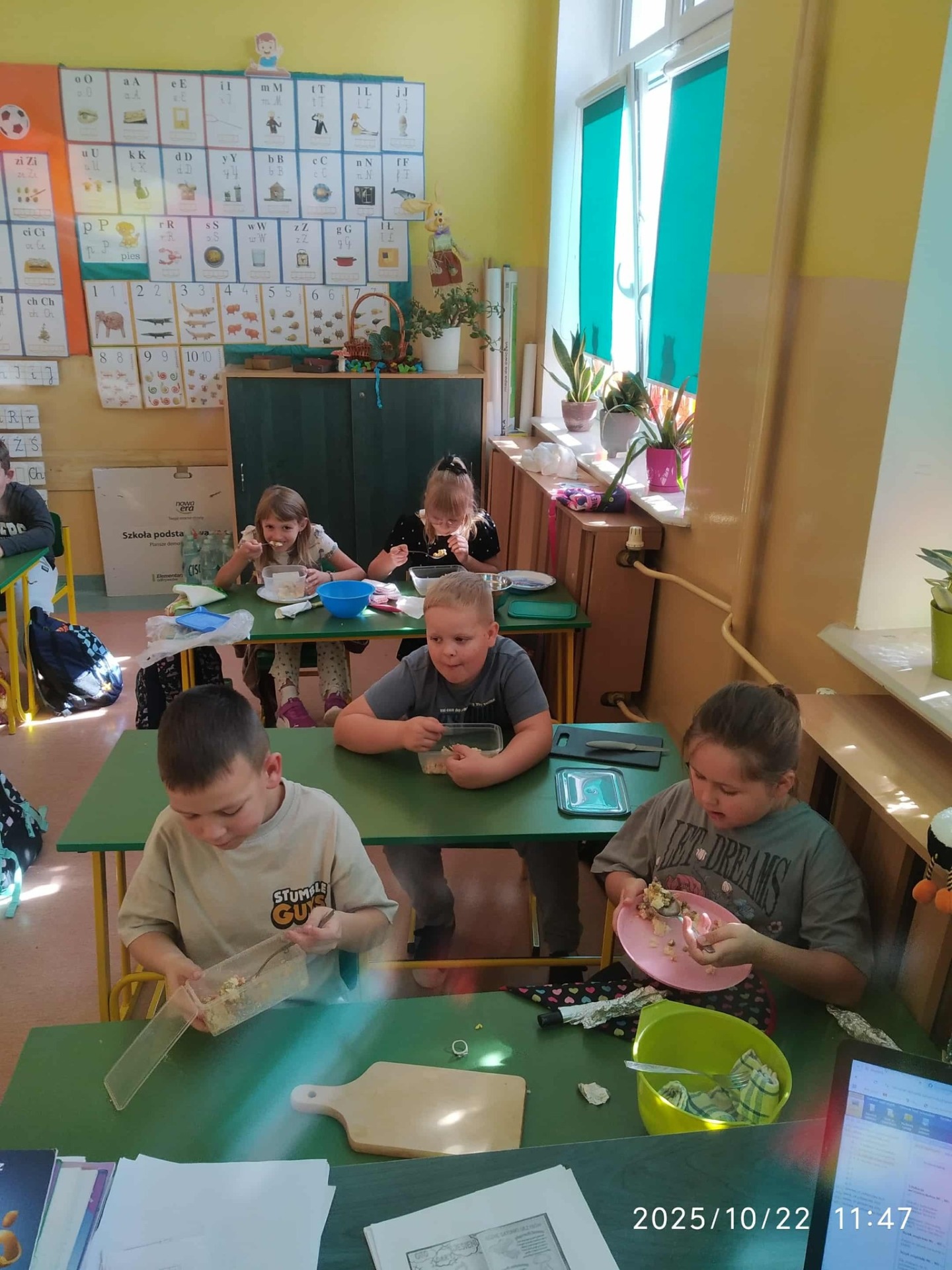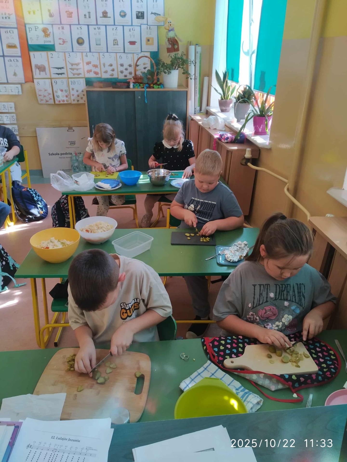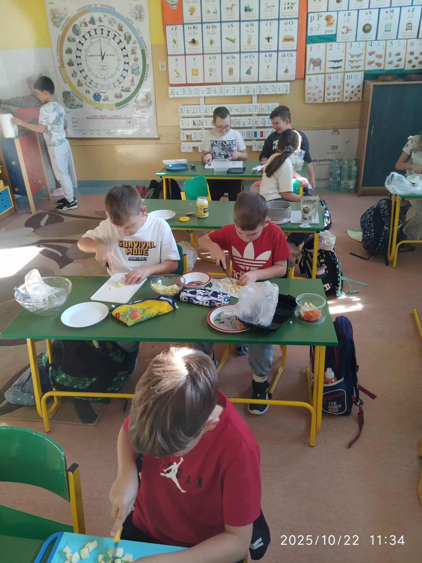 Uczniowie razem z wychowawczynią Panią Kasią Wróblewską przygotowywali pyszne i zdrowe sałatki warzywne ![]()