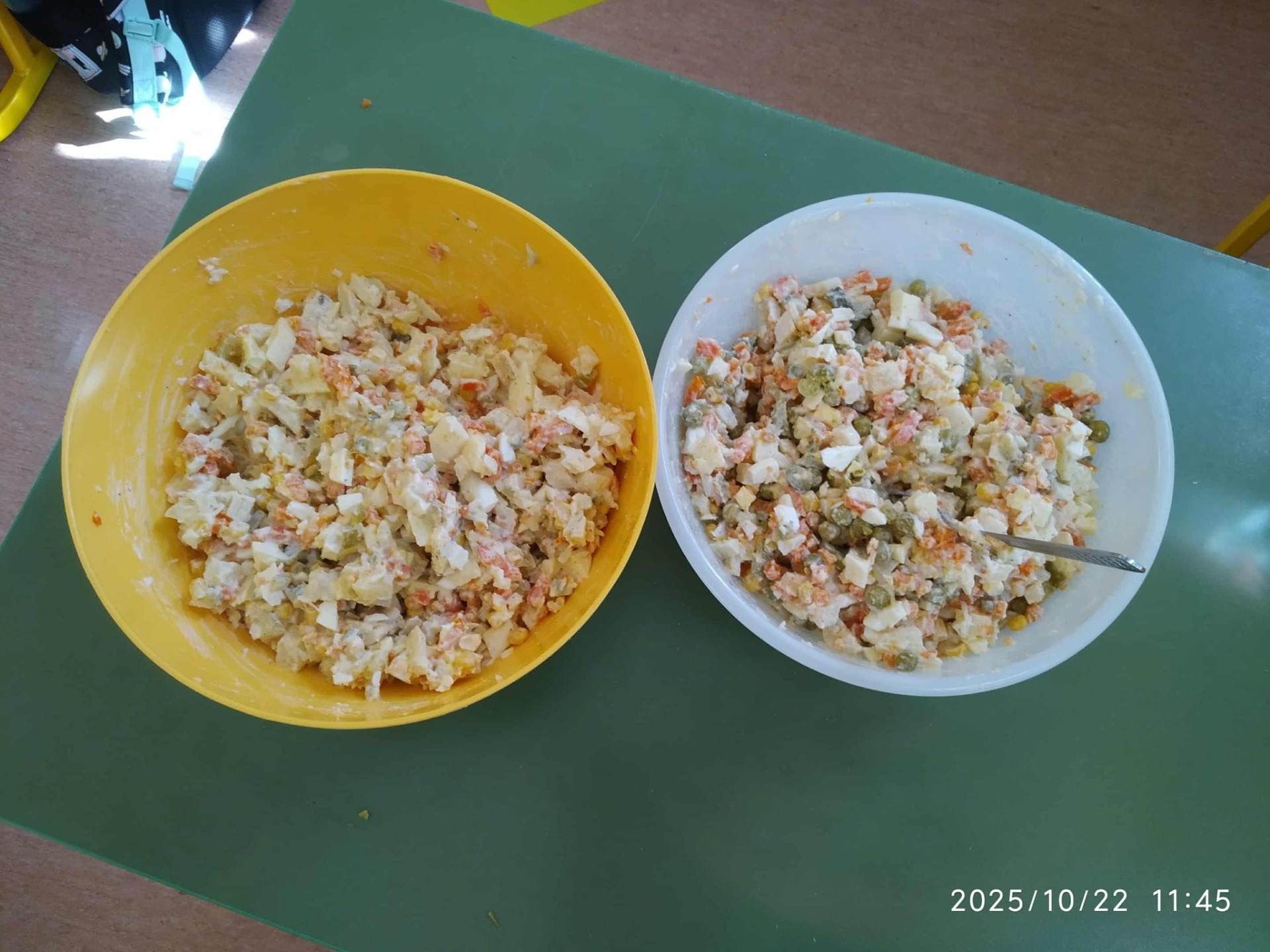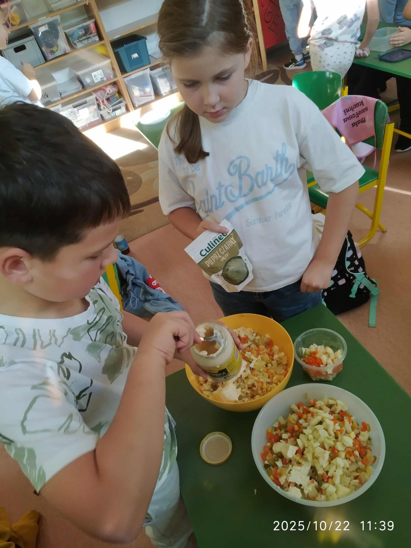 . Dzięki takim zajęciom dzieci uczą się wzajemnej pomocy, operowania kuchennymi akcesoriami, a także doskonalą koncentrację i integrują się ze sobą. Co więcej utrwalają nazwy i wygląd warzyw oraz poznają ich smak. Bo sałatka warzywna jest zdrowa i pożywna