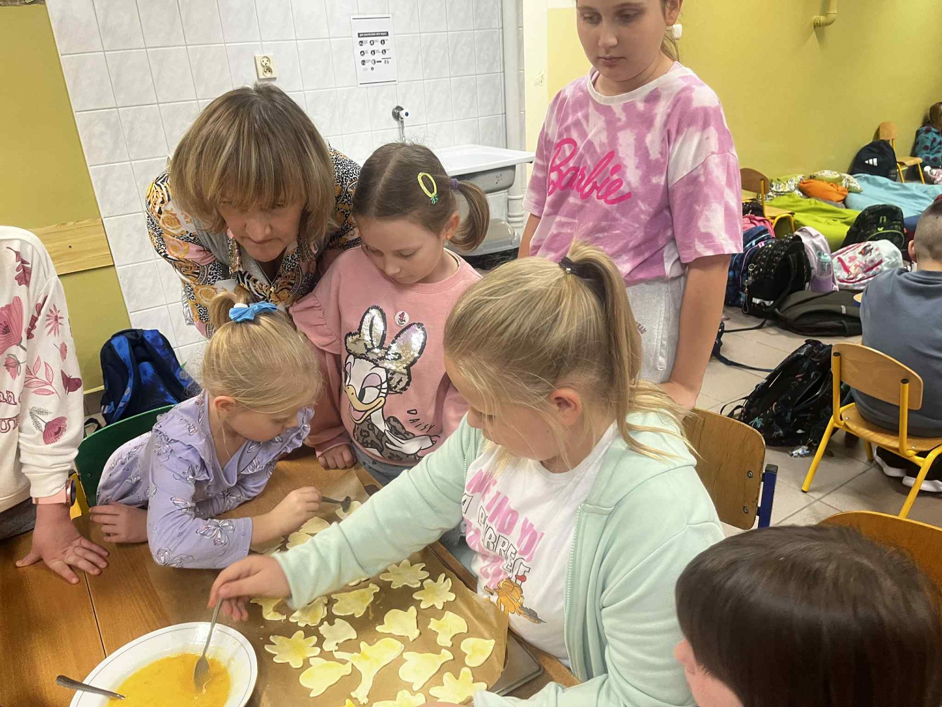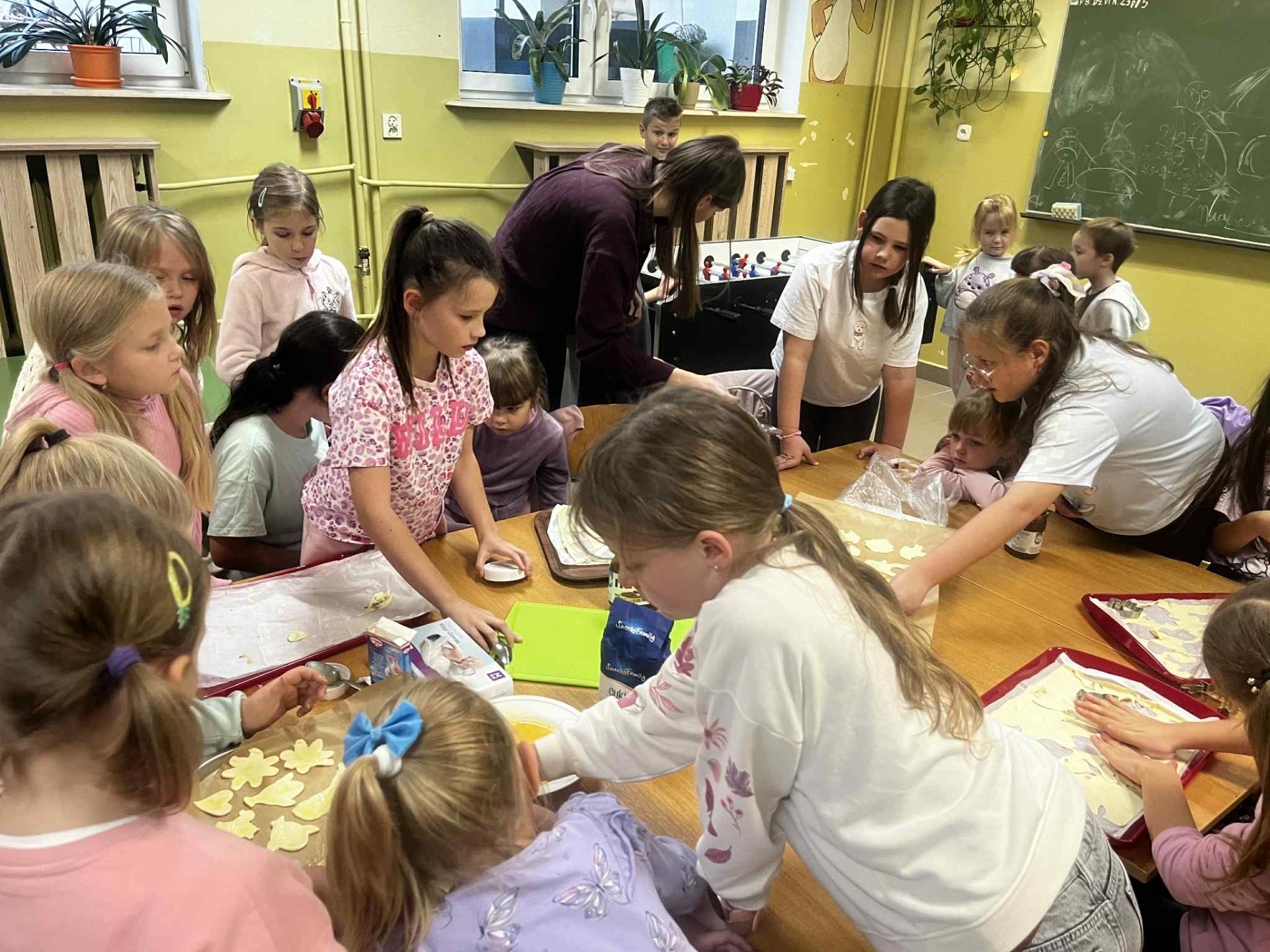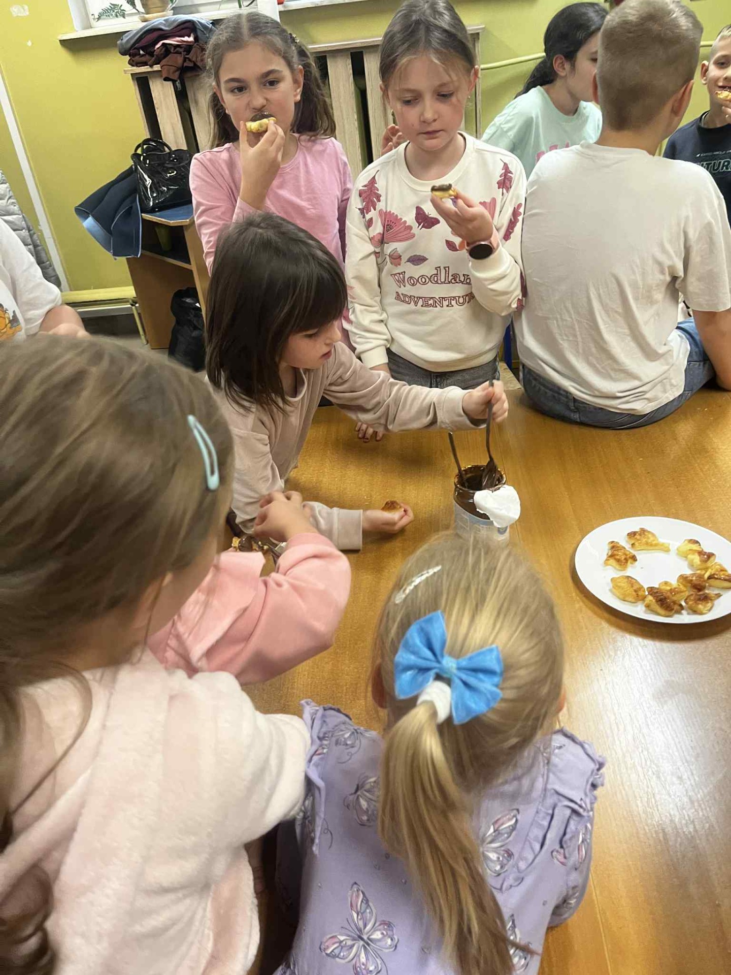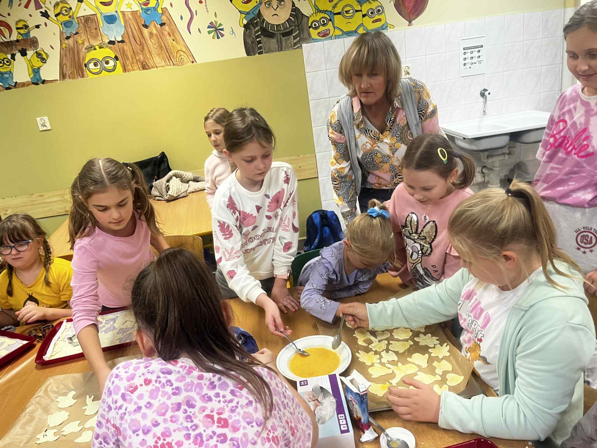 W ramach działań szkolnego Koła Towarzystwa Przyjaciół Dzieci (TPD) nasi uczniowie zamienili się w prawdziwych małych cukierników. Z ogromnym zaangażowaniem odmierzali składniki, kroili ciasto, zawijali ślimaczki i ozdabiali ciasteczka – a wszystko to z uśmiechem (i odrobiną kremu czekoladowego na nosie