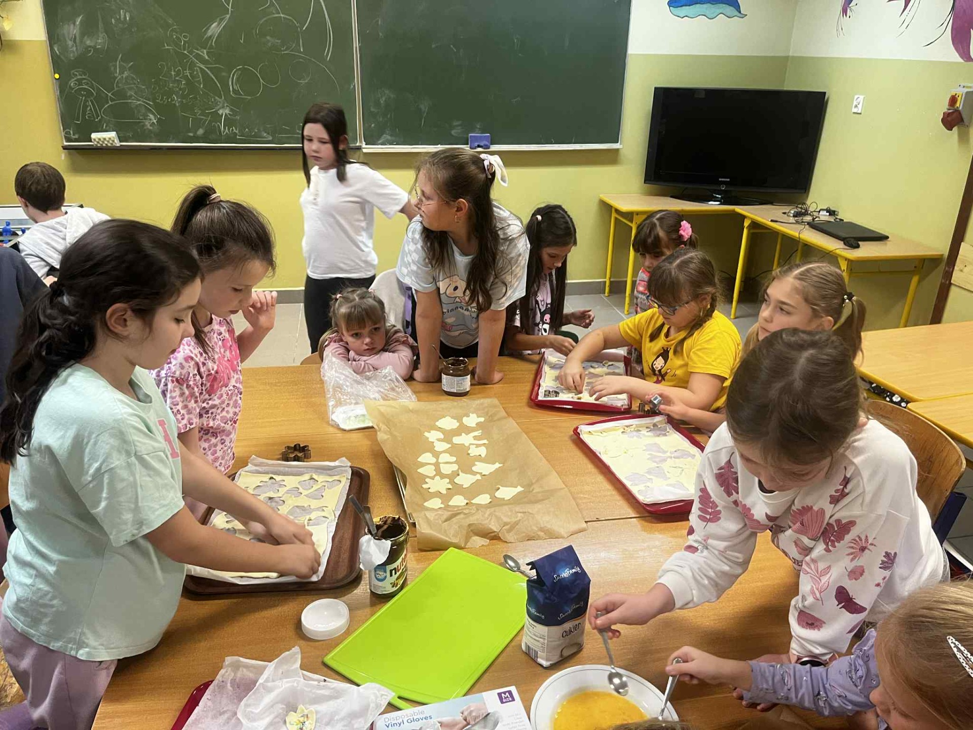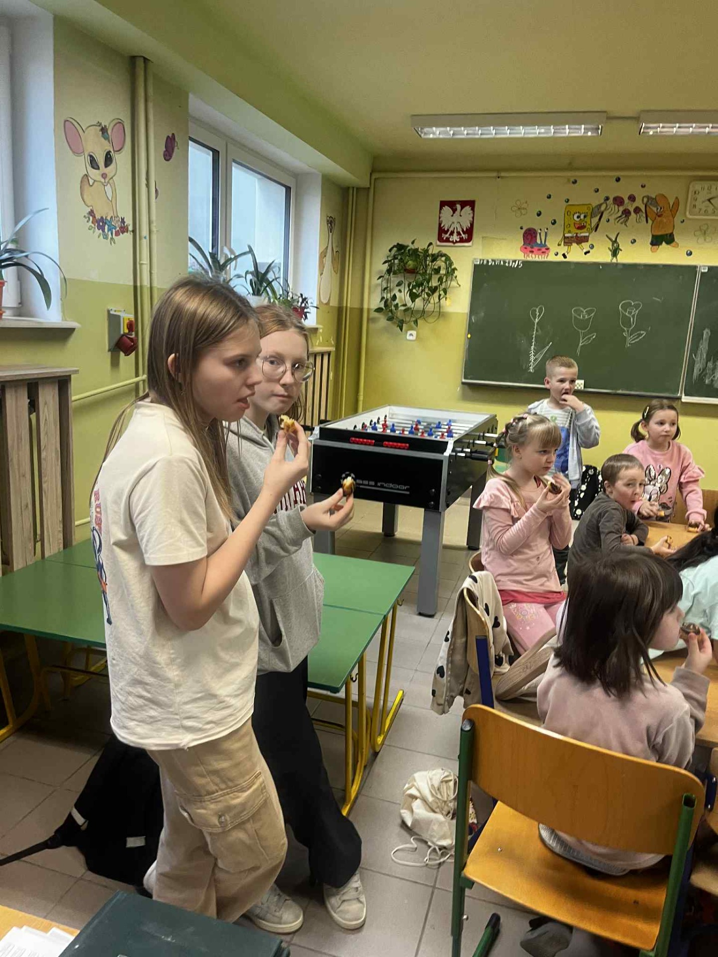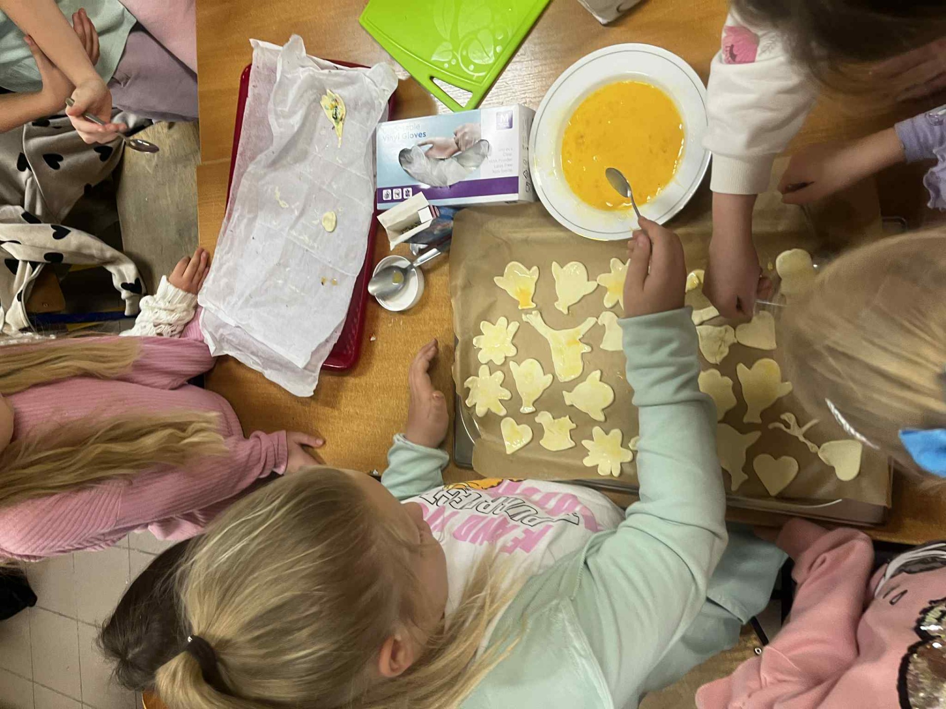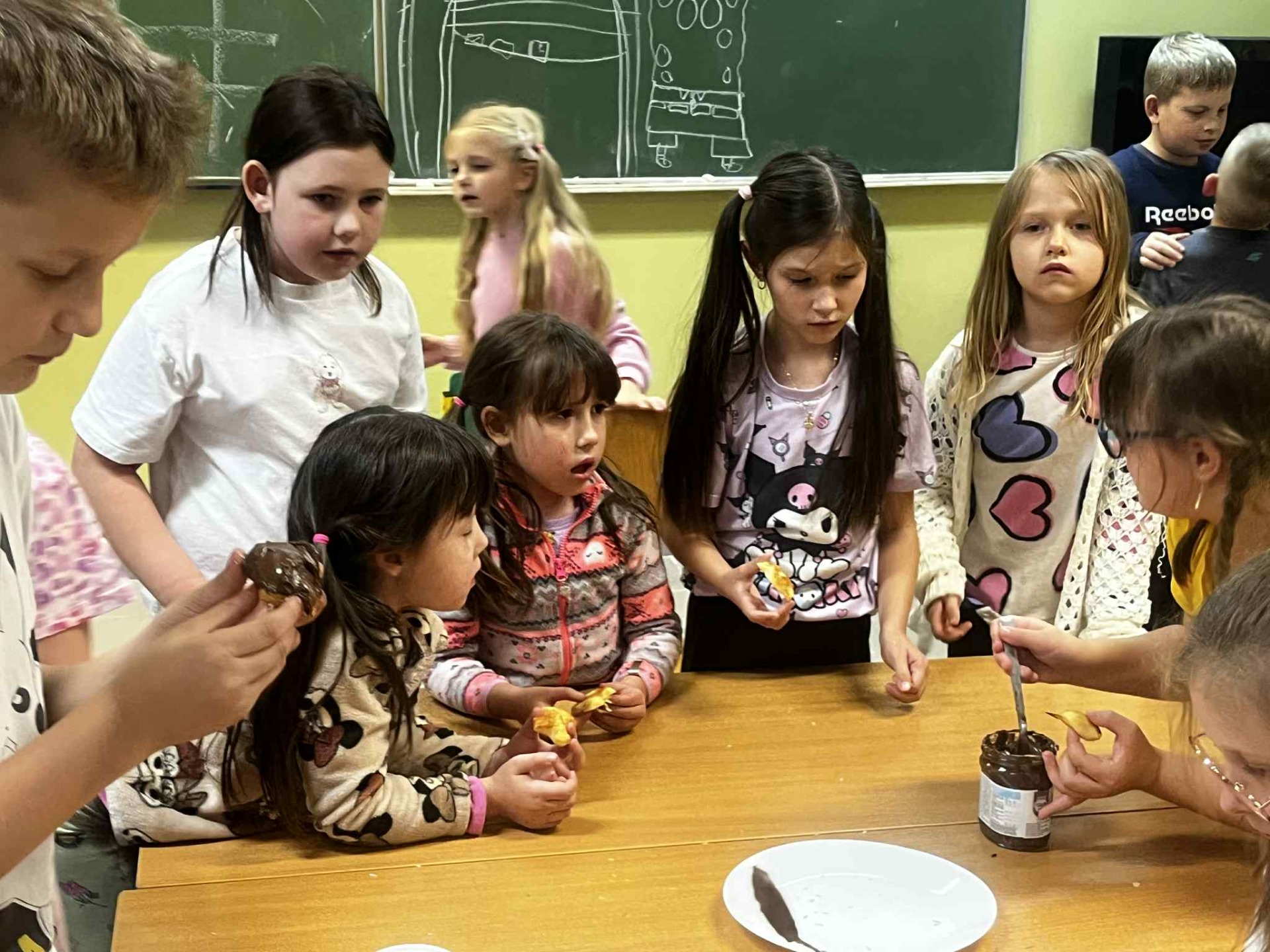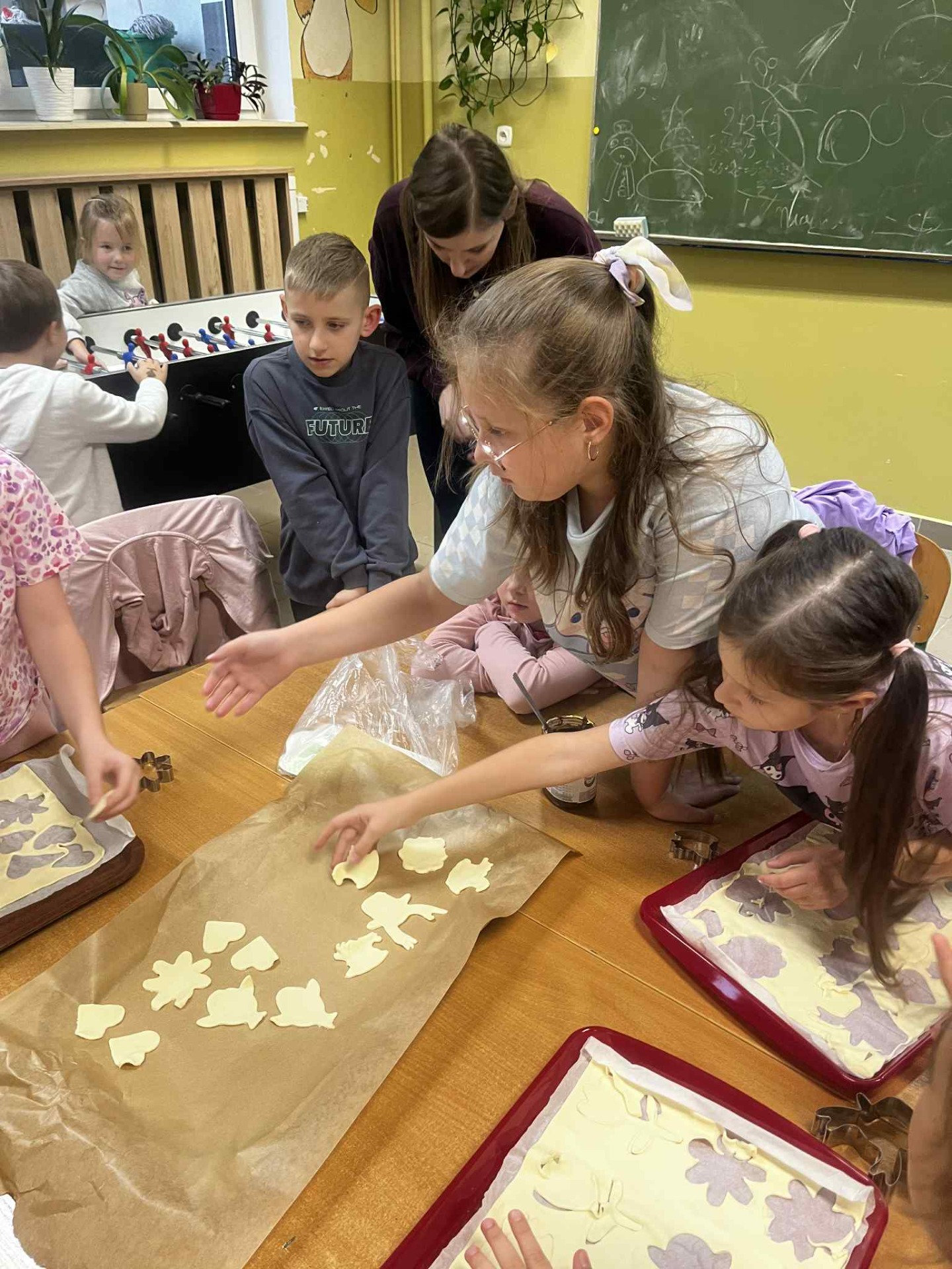 W ramach działań szkolnego Koła Towarzystwa Przyjaciół Dzieci (TPD) nasi uczniowie zamienili się w prawdziwych małych cukierników. Z ogromnym zaangażowaniem odmierzali składniki, kroili ciasto, zawijali ślimaczki i ozdabiali ciasteczka – a wszystko to z uśmiechem (i odrobiną kremu czekoladowego na nosie