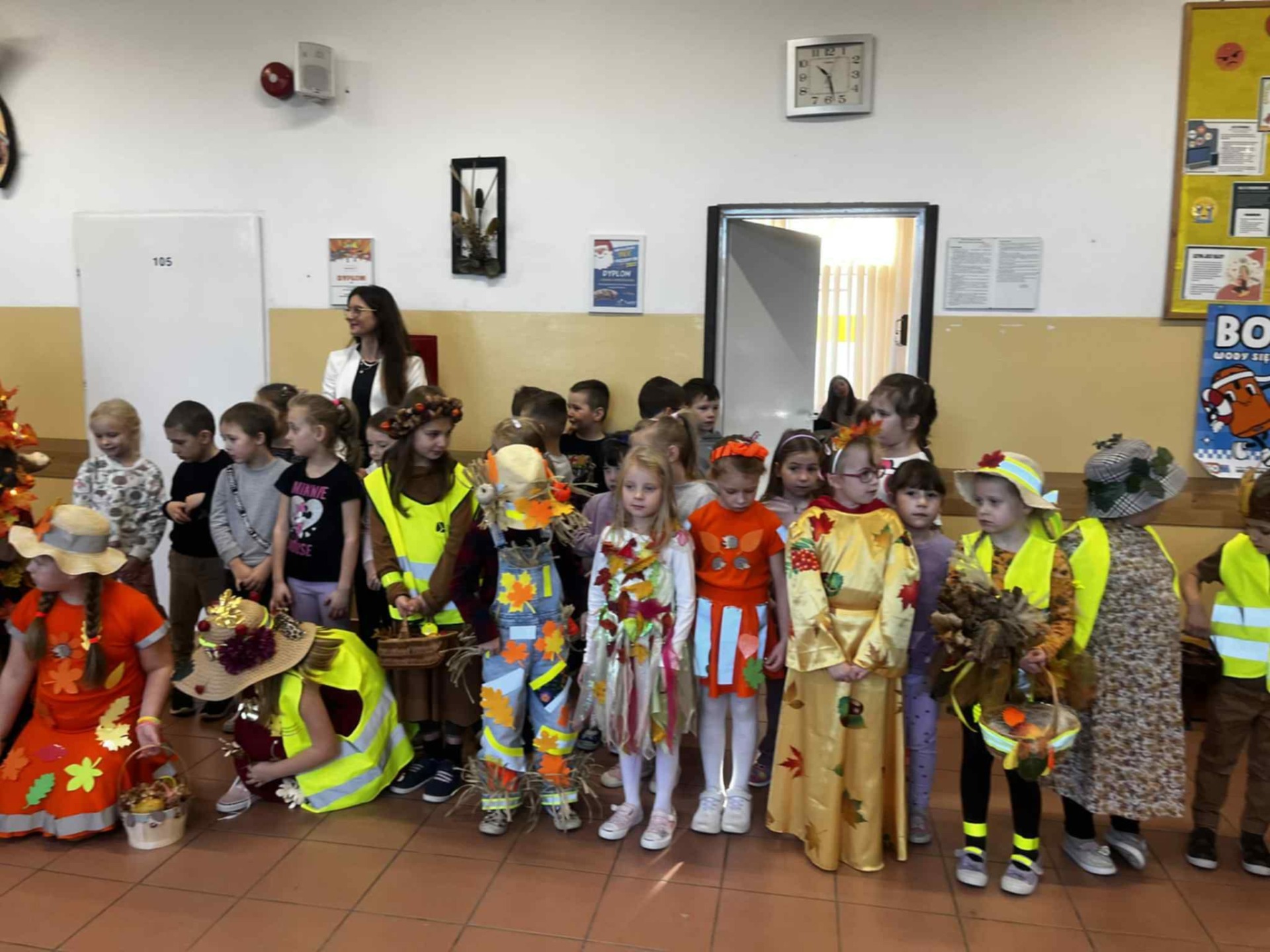Pięknie odbkaskowo i kolorowo zrobiło się dziś w naszej szkole. Uczniowie klas I-III oraz przedszkolaki licznie wzięli udział w zorganizowanym konkursie. Komisja miała trudne zadanie z wyłonieniem zwycięzców, ponieważ wszyscy mieli super przebrania. I tak I miejsce zajęła Amelia Rutkowska, II Mikołaj Sowik, III Zuzanna Sinior. Na wyróżnienie zasłużyły również Tosia Gawin, Justynka Myśliwiec, Hania Stachura, Pola Pietruchowska. Wszystkim serdecznie dziękujemy za udział i pomoc w organizacji całego przedsięwzięcia. ![]()