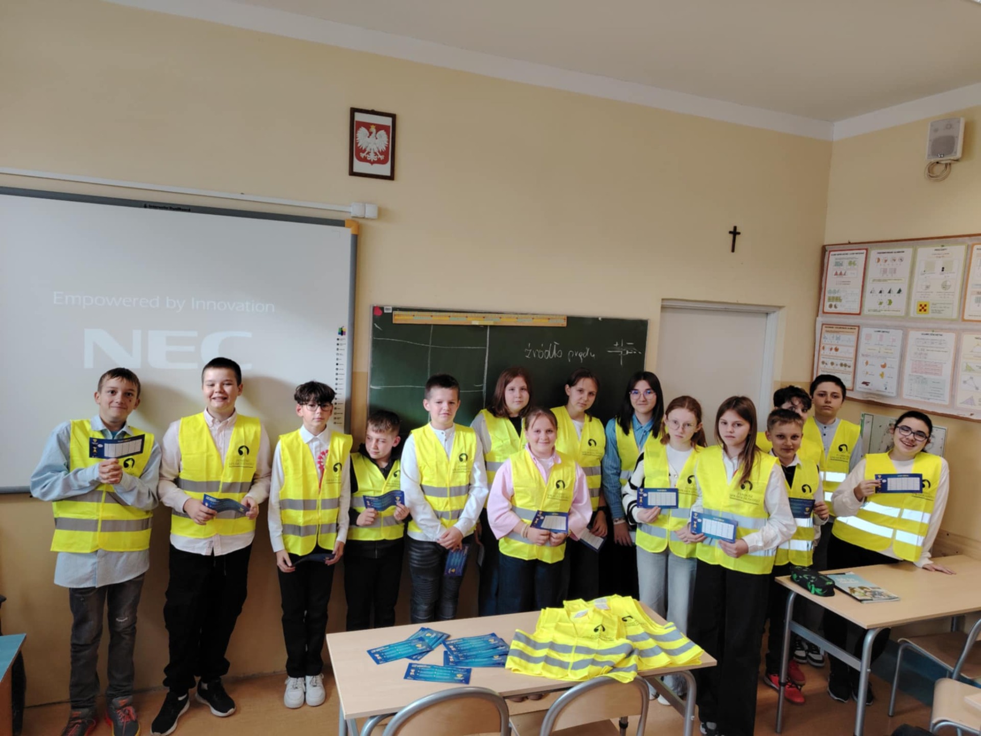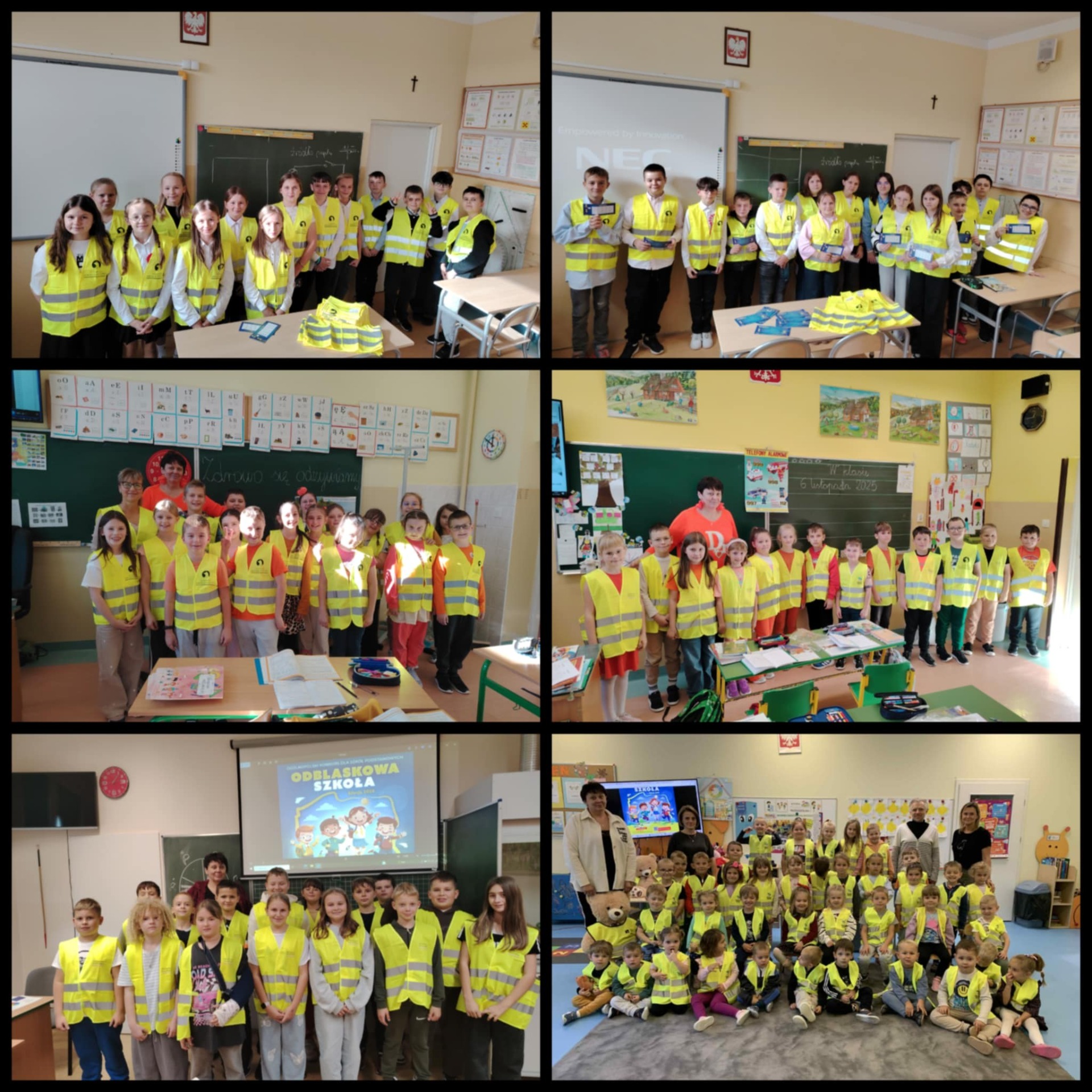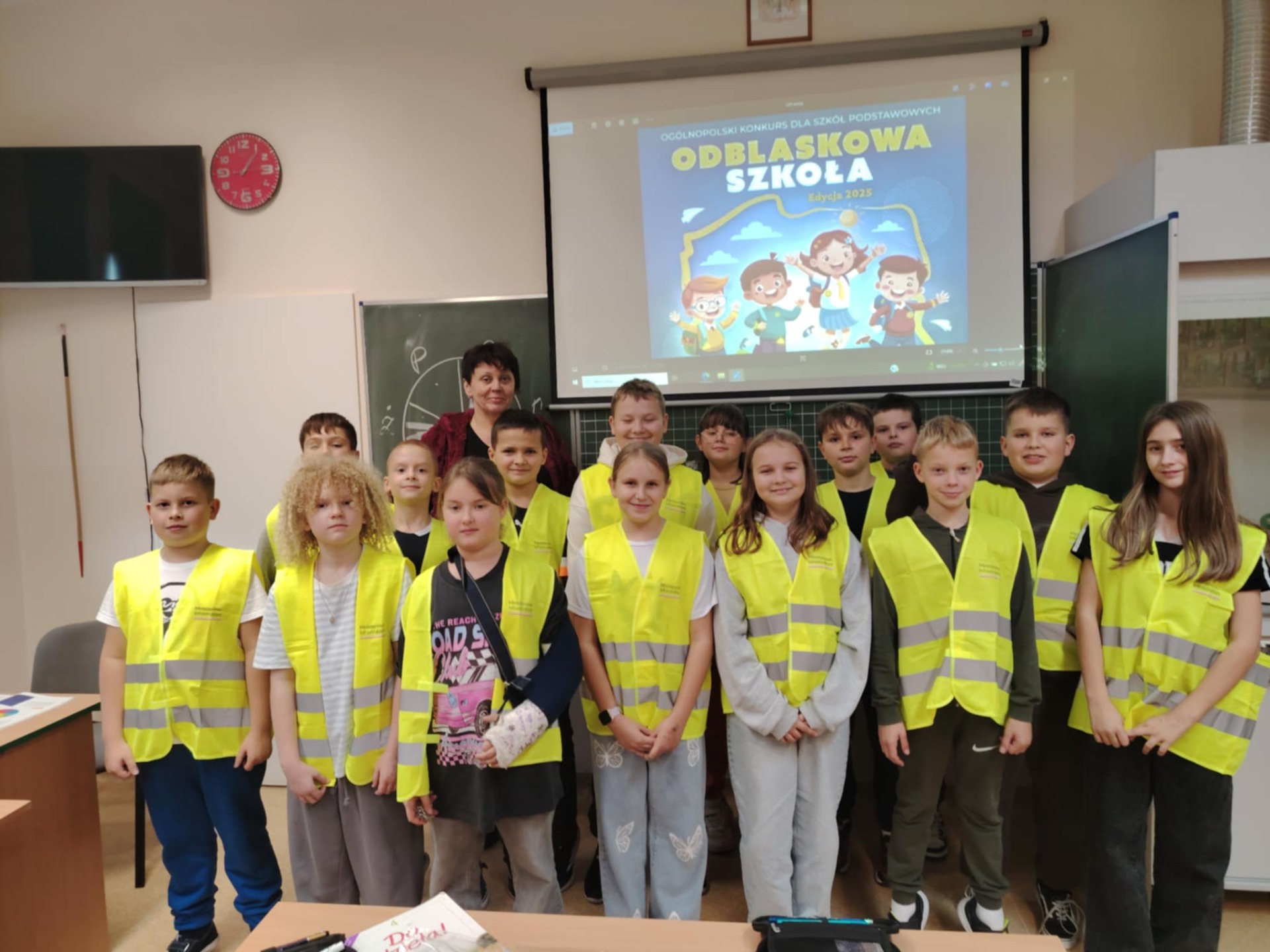Kochani, mamy to! Udało nam się wyposażyć wszystkich uczniów zgłoszonych do konkursu w elementy odblaskowe tj. kamizelki, opaski, przywieszki. Wyposażyliśmy również kadrę pedegogiczną i niepedagogiczną naszej placówki. Elementy odblaskowe również rozdawaliśmy osobom odwiedzającym naszą placówkę. Możemy być dumni z naszych działań. ![]()