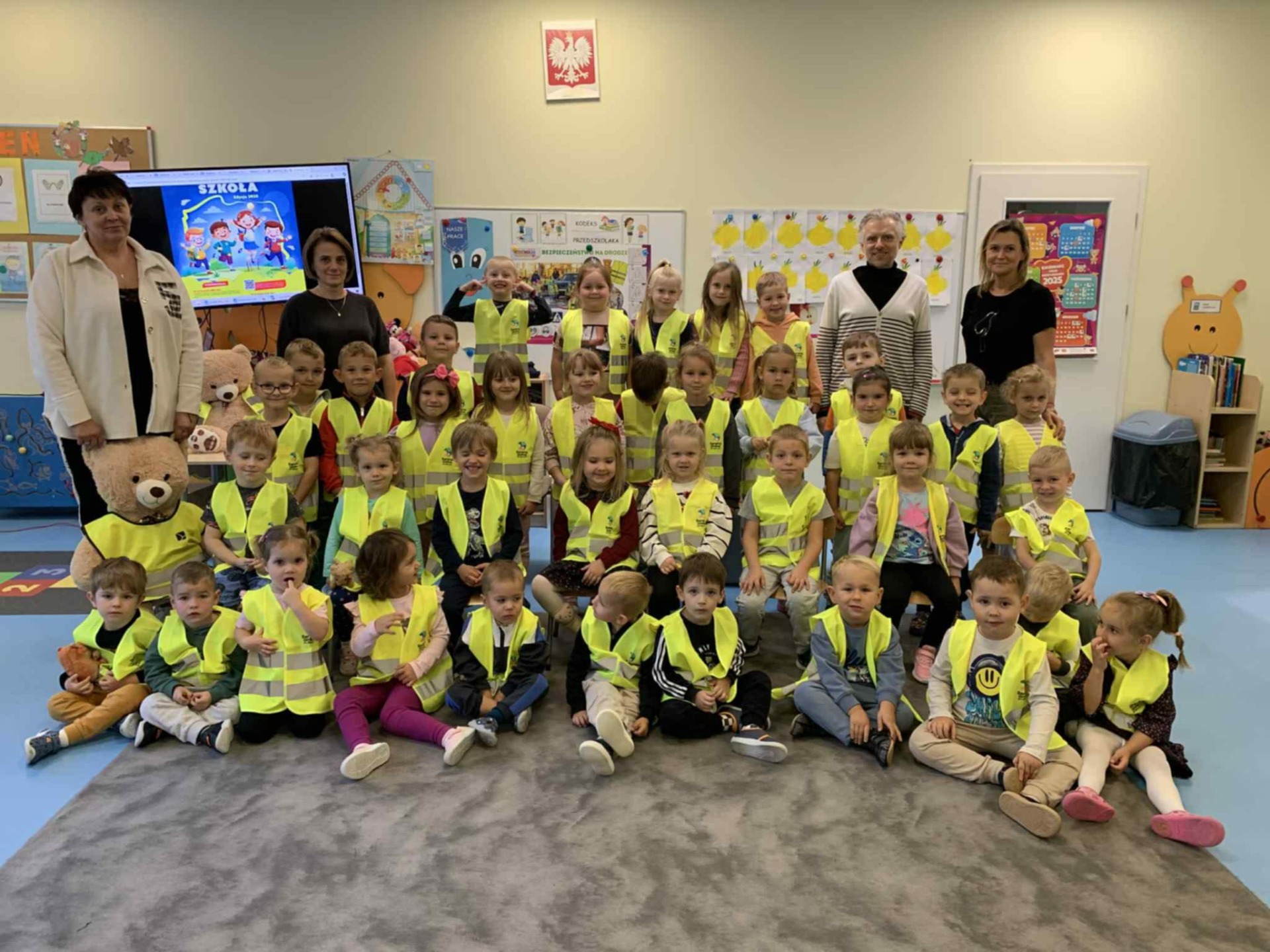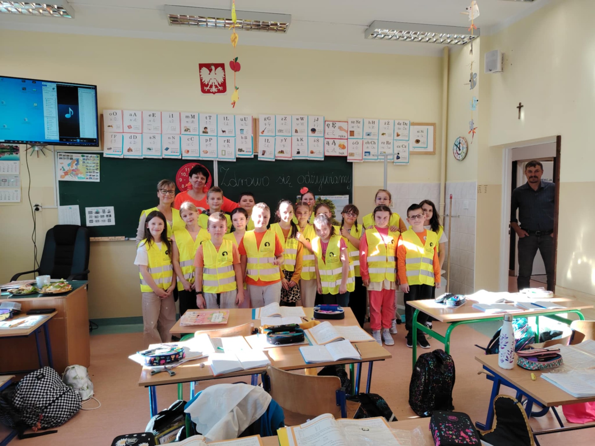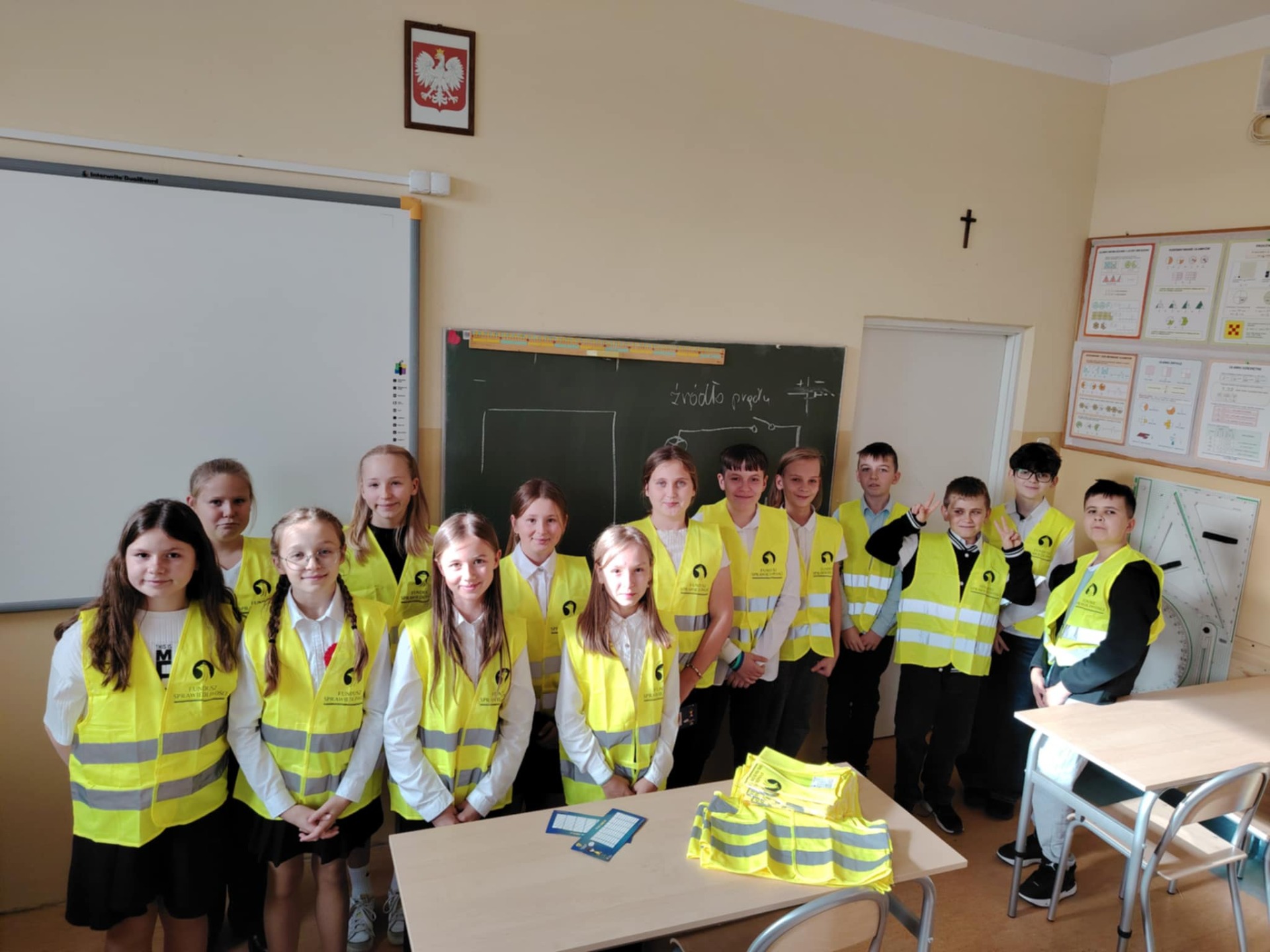 Kochani, mamy to! Udało nam się wyposażyć wszystkich uczniów zgłoszonych do konkursu w elementy odblaskowe tj. kamizelki, opaski, przywieszki. Wyposażyliśmy również kadrę pedegogiczną i niepedagogiczną naszej placówki. Elementy odblaskowe również rozdawaliśmy osobom odwiedzającym naszą placówkę. Możemy być dumni z naszych działań. ![]()