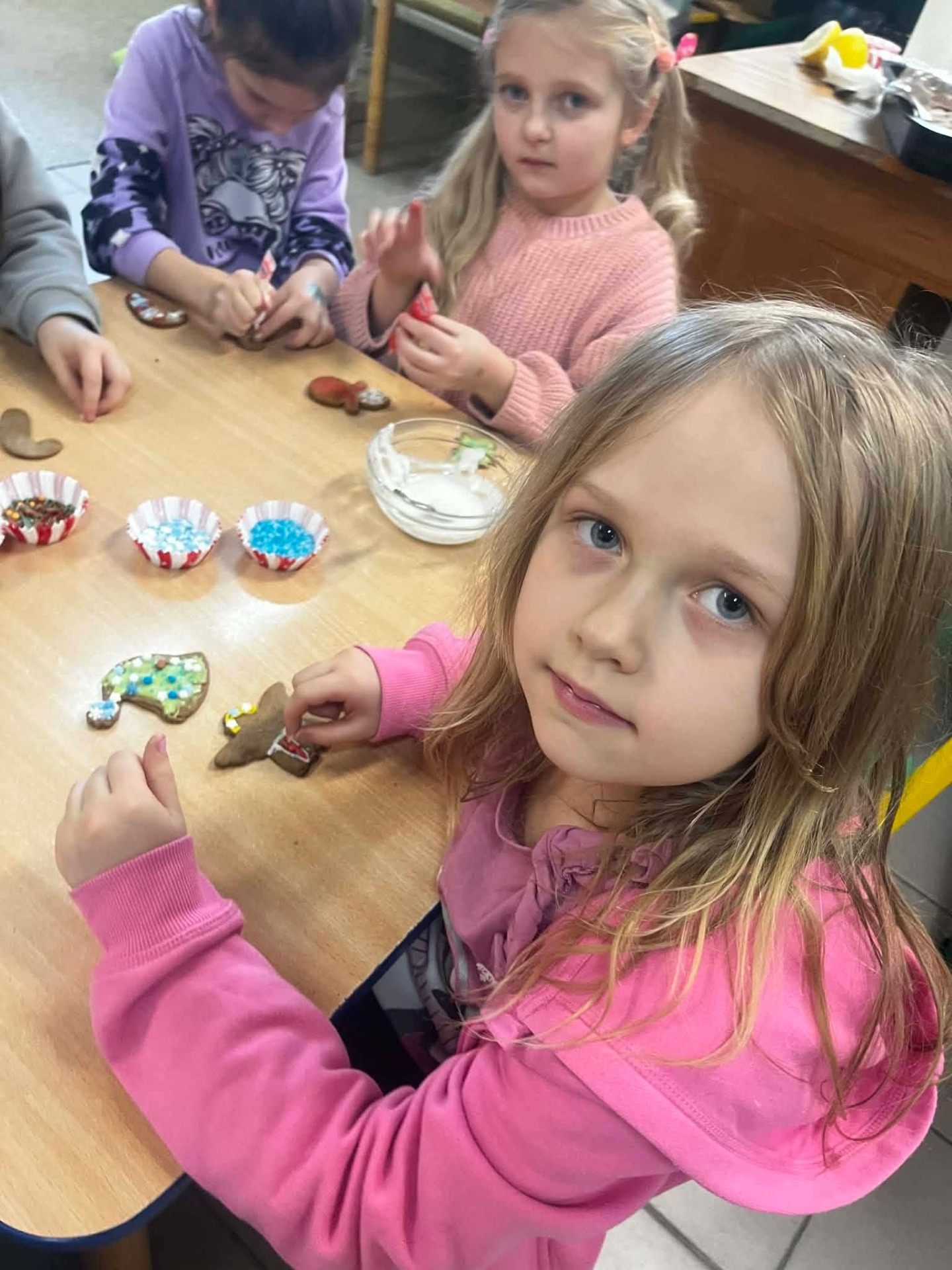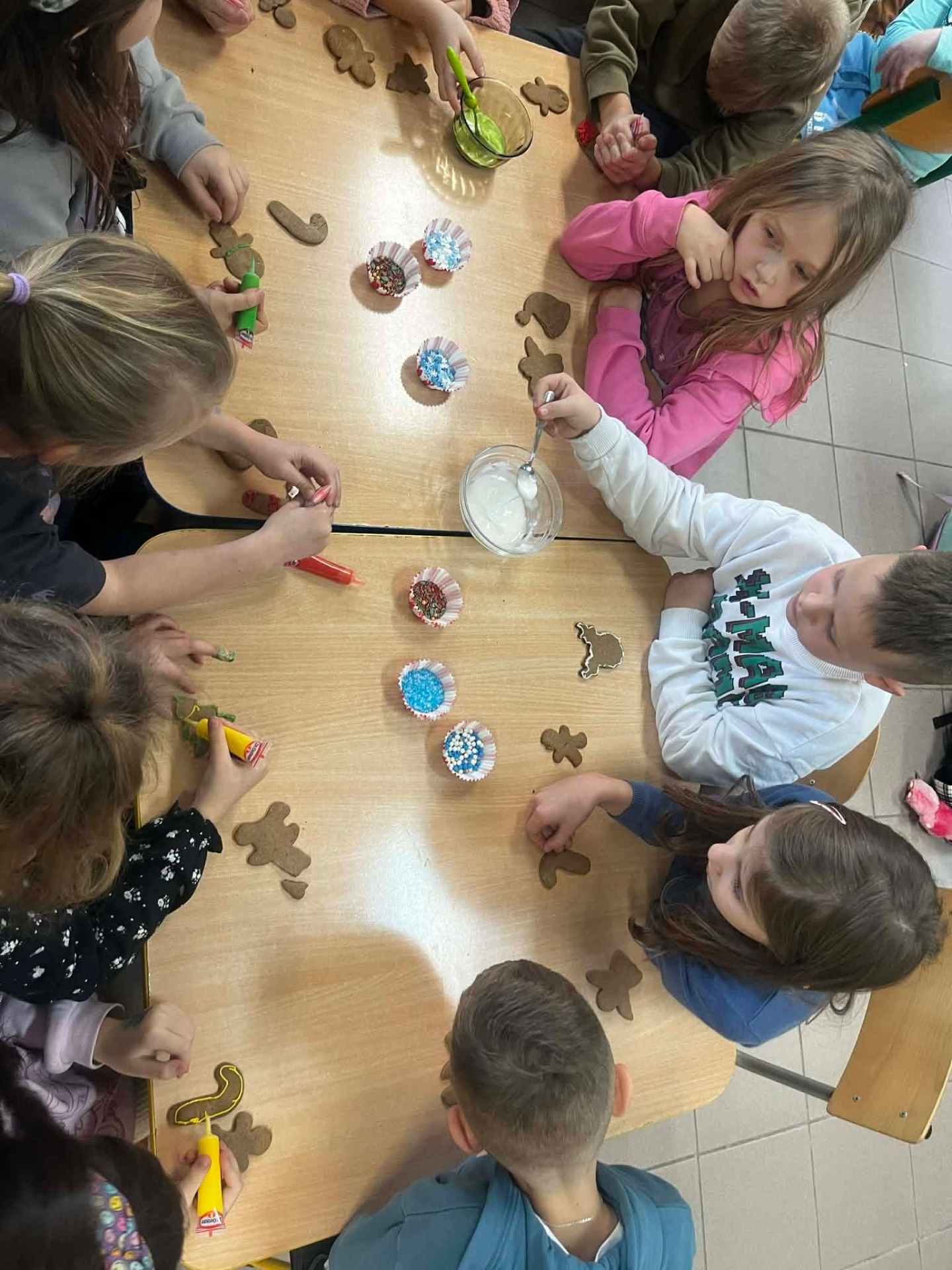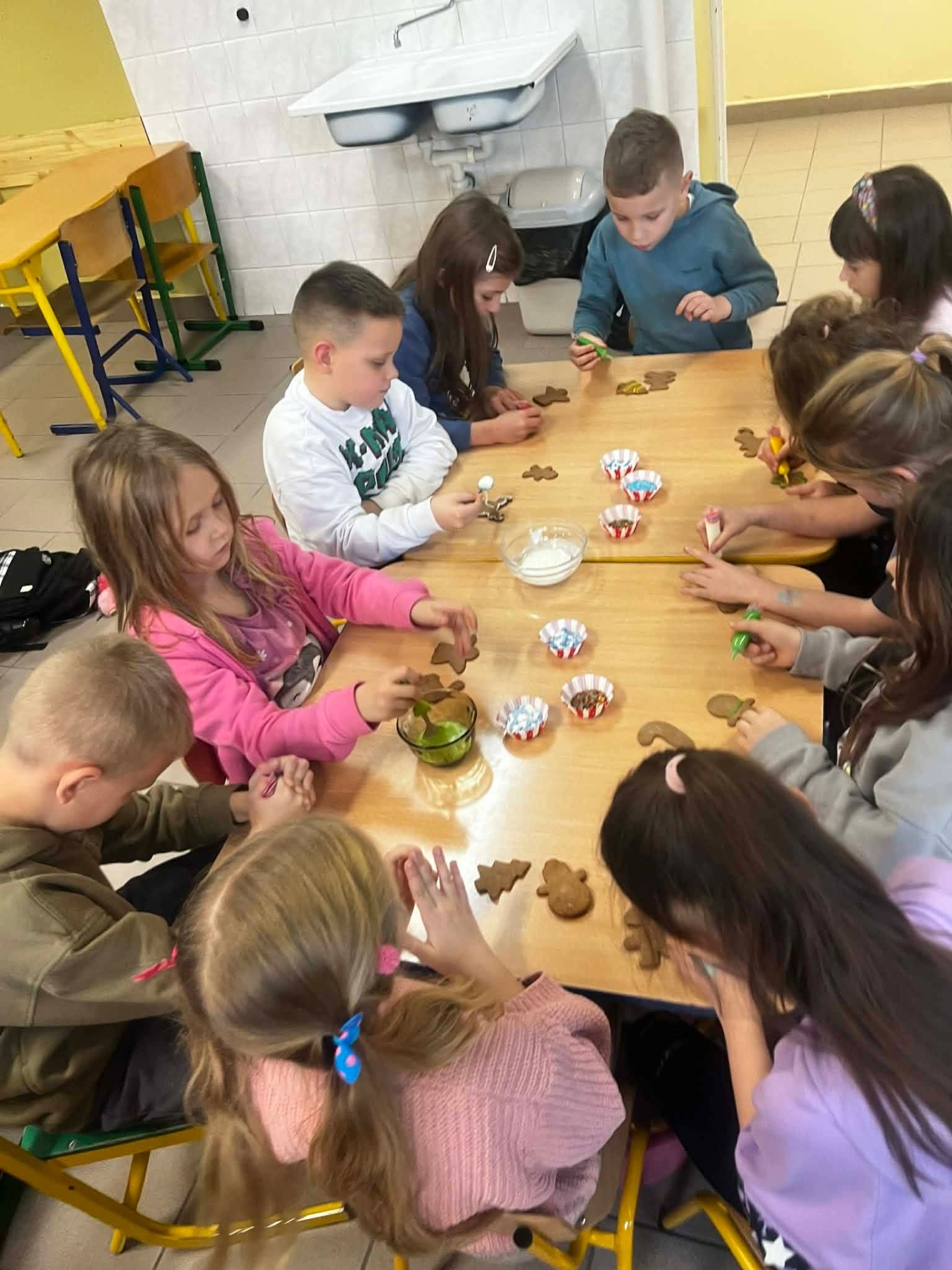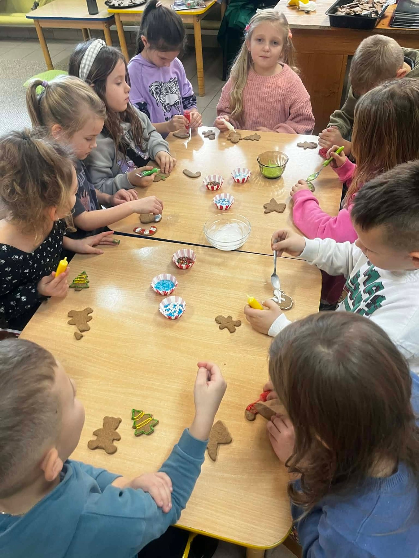 W grudniu, tuż przed samymi świętami Bożego Narodzenia, odbyło się spotkanie szkolnego koła TPD. Główną atrakcją było wspólne pieczenie pierniczków przez dzieci. W radosnej atmosferze uczniowie przygotowywali i własnoręcznie dekorowali świąteczne wypieki. Całemu wydarzeniu towarzyszył wyjątkowy, ciepły klimat, a zapach przypraw korzennych wypełnił całą szkołę, wprowadzając wszystkich w magiczny, świąteczny nastrój.
