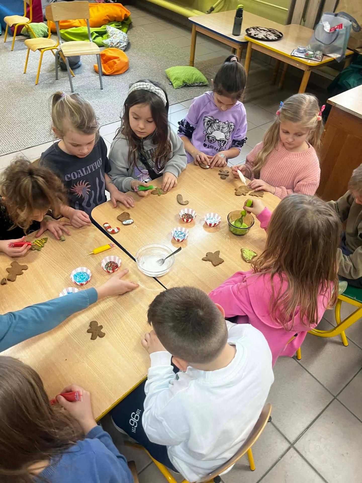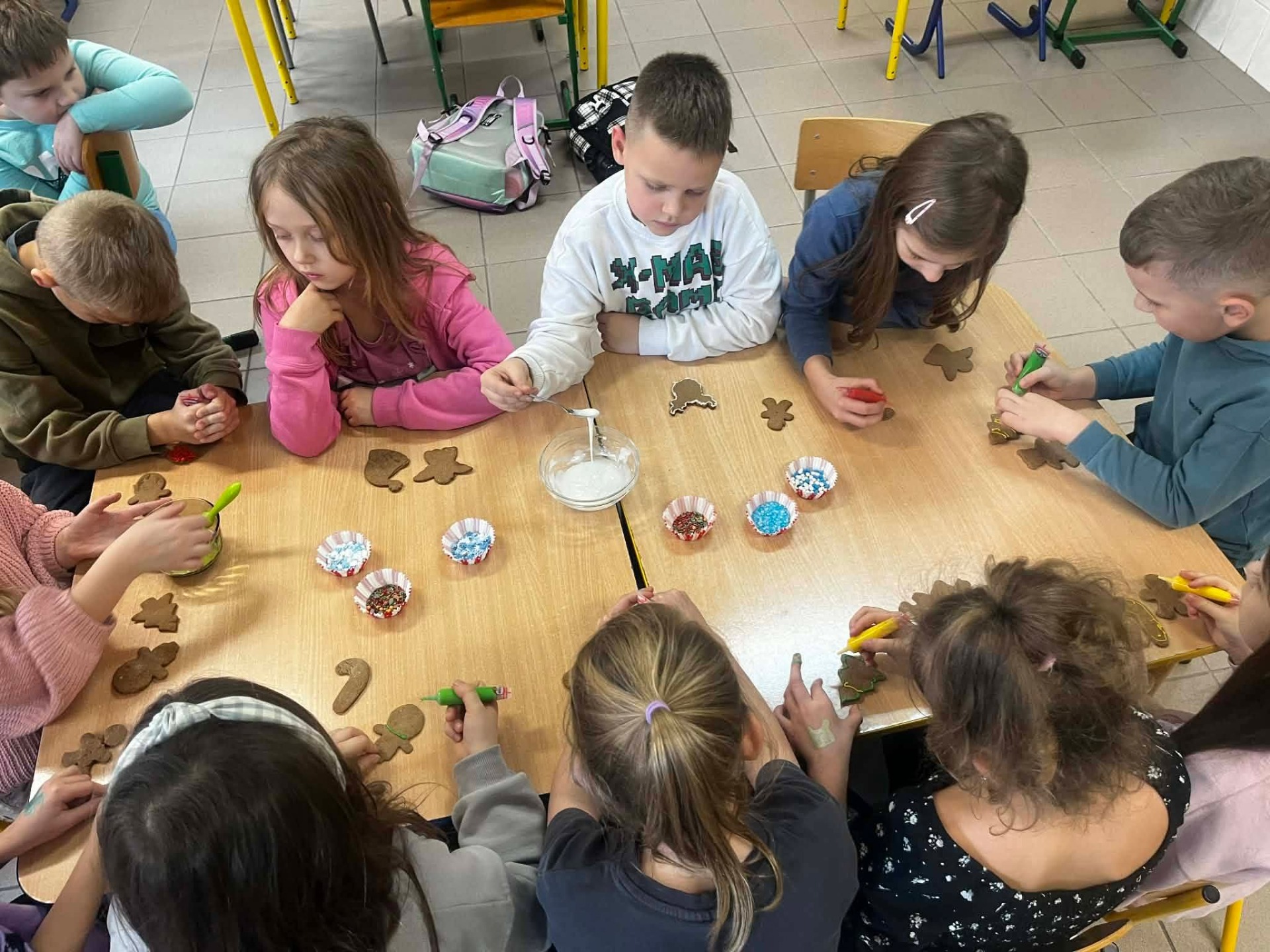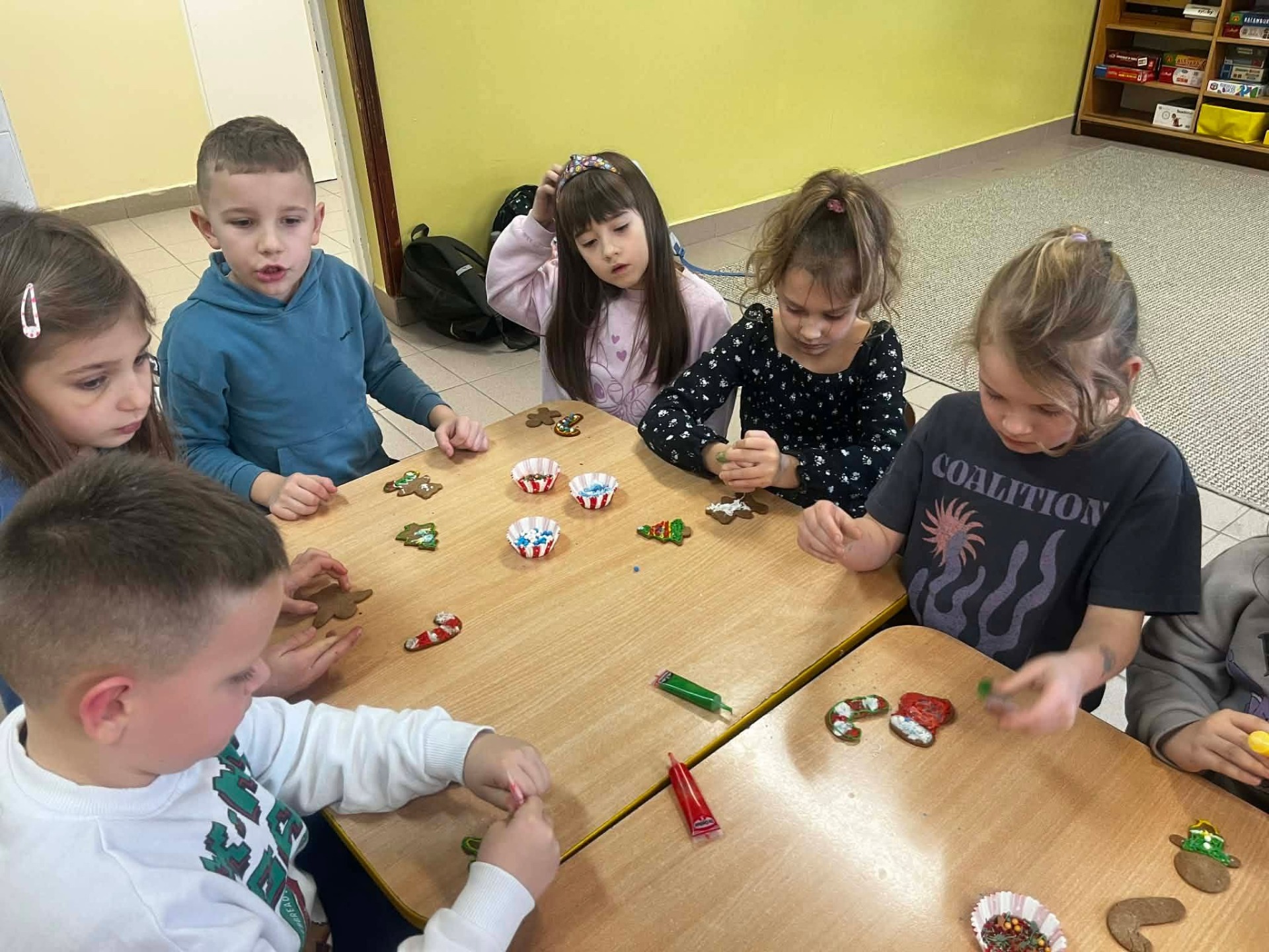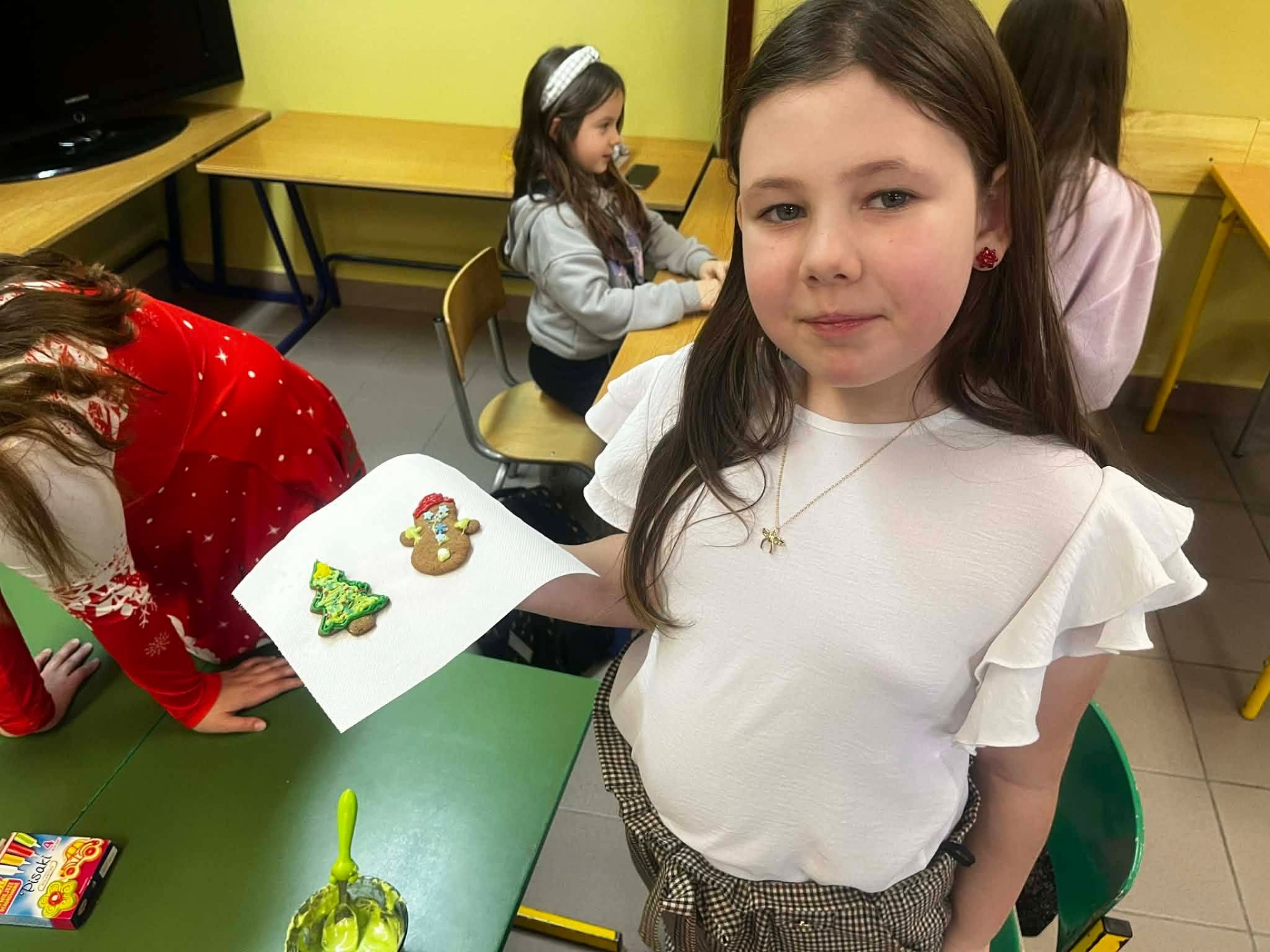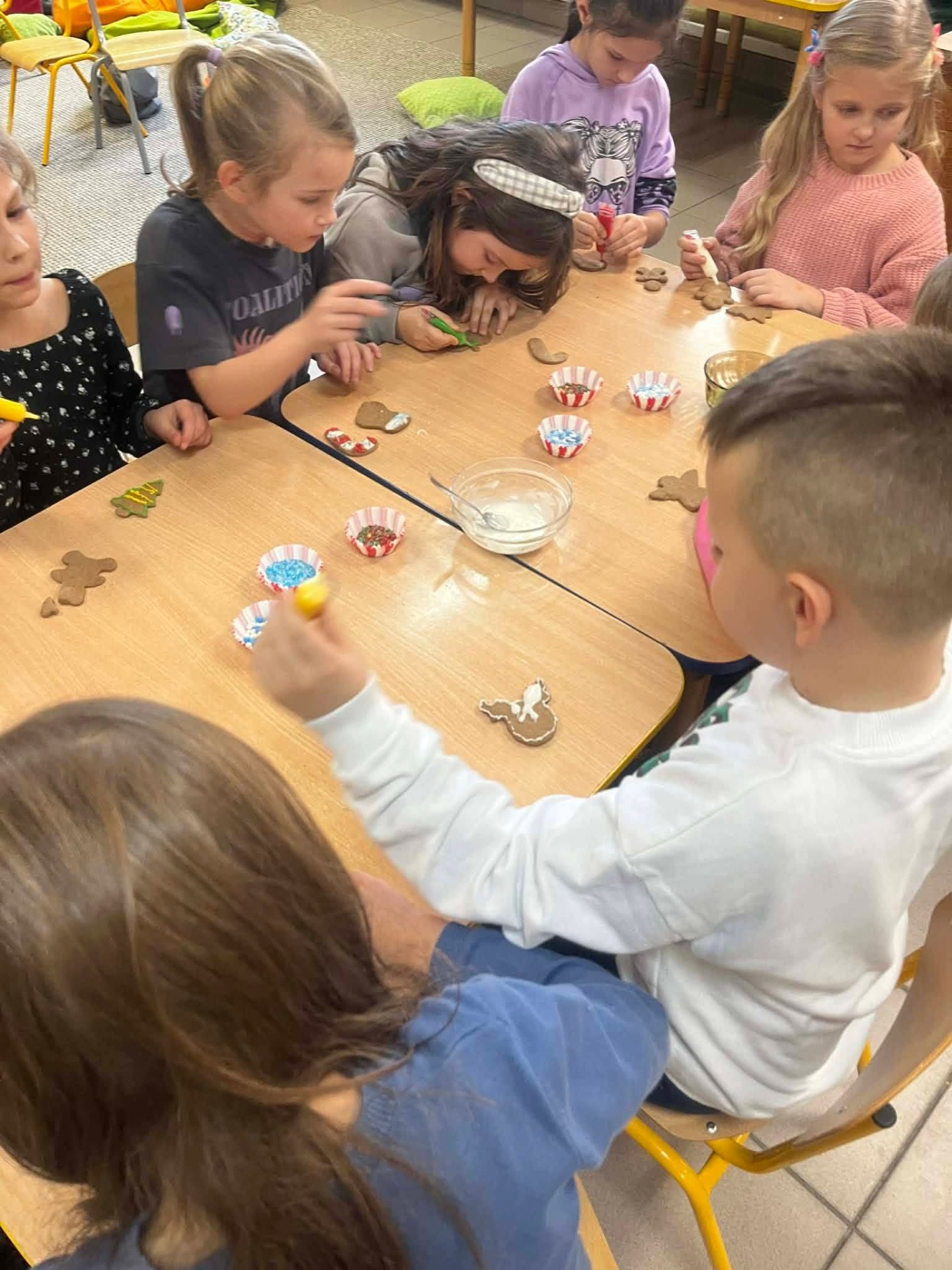 W grudniu, tuż przed samymi świętami Bożego Narodzenia, odbyło się spotkanie szkolnego koła TPD. Główną atrakcją było wspólne pieczenie pierniczków przez dzieci. W radosnej atmosferze uczniowie przygotowywali i własnoręcznie dekorowali świąteczne wypieki. Całemu wydarzeniu towarzyszył wyjątkowy, ciepły klimat, a zapach przypraw korzennych wypełnił całą szkołę, wprowadzając wszystkich w magiczny, świąteczny nastrój.