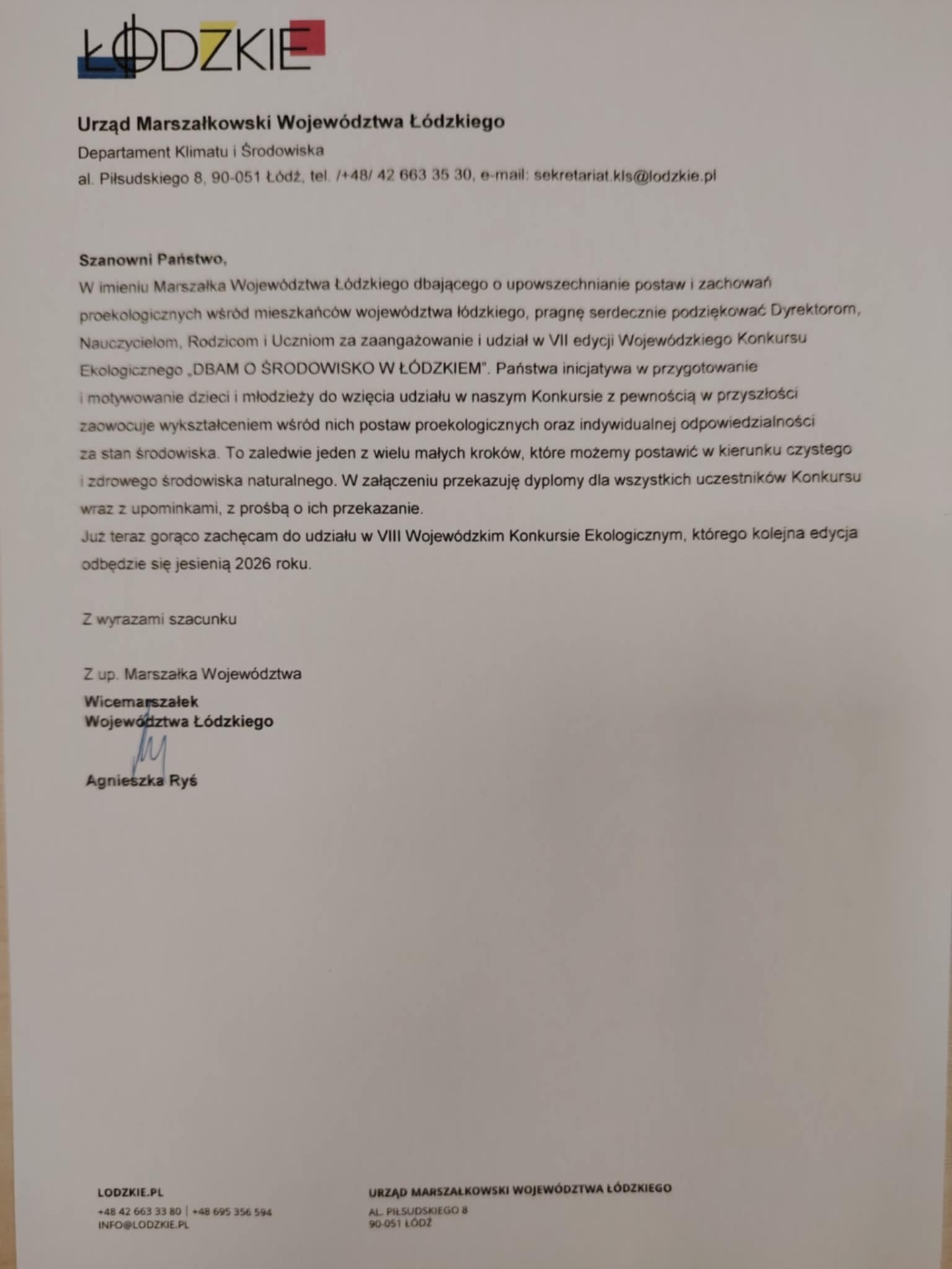 Organizatorem był Zarząd Województwa Łódzkiego – Departament Klimatu i Środowiska.